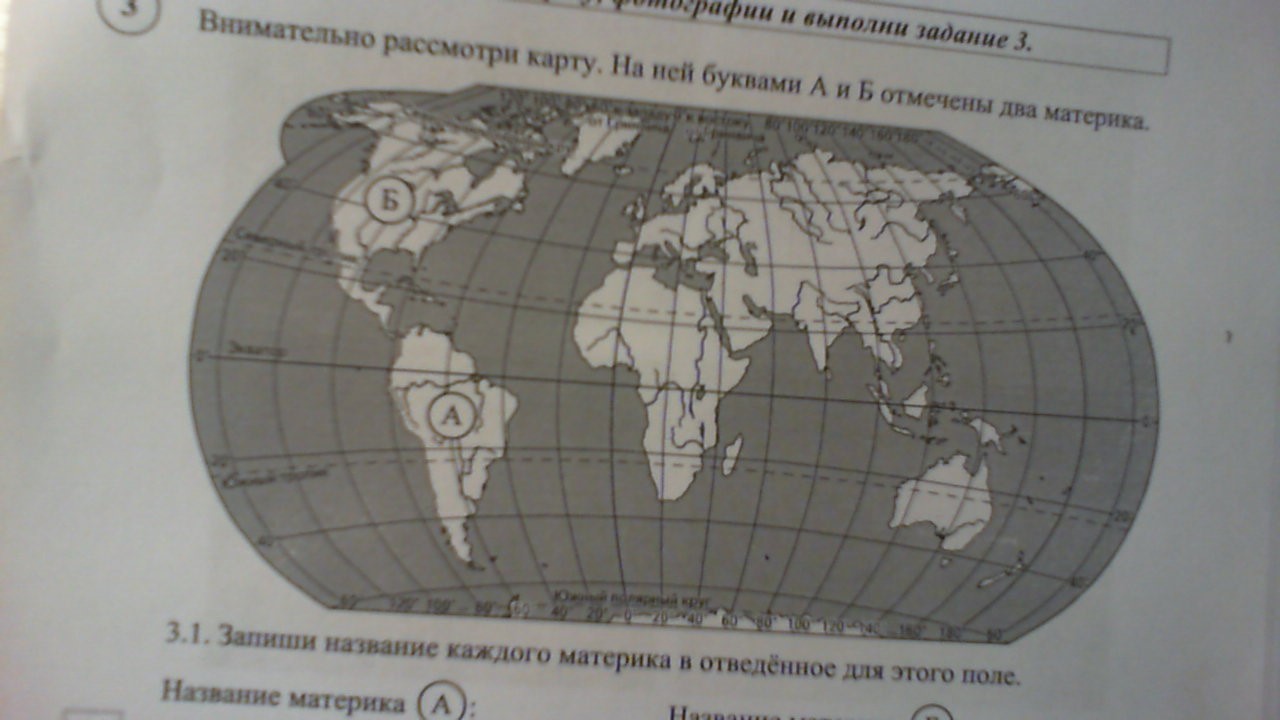 Внимательно рассмотри карту.На ней буквани А и Б отмечены 2 материка