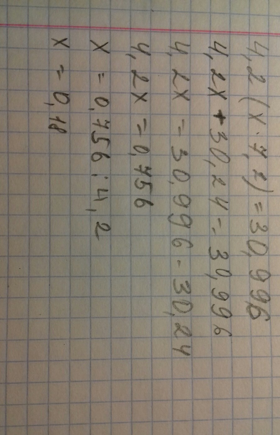 тогда у тебя получится 4,2×(0,18×7,2)=5,4432 а должно 30,996