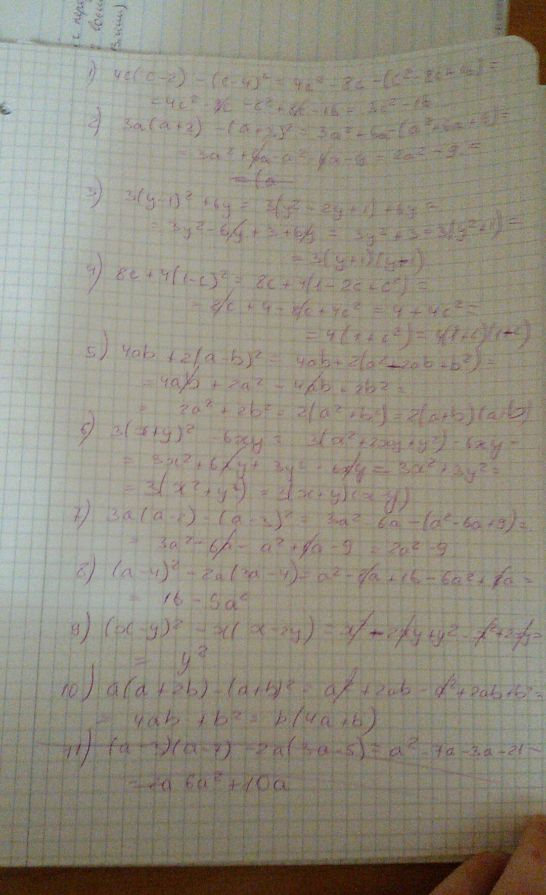 7)3a(a-2)-(a-3)^2=3a2-6a-a2+3a-9=2a2-3a-9