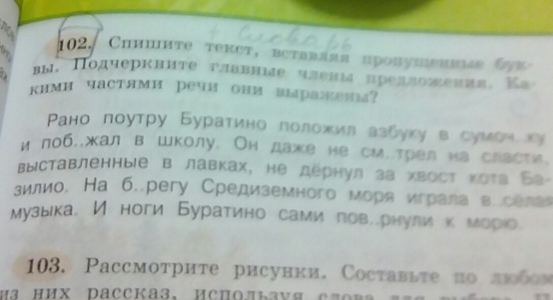 Рано поутру Буратино положил азбуку в сумоЧКу (чк без ь) и побЕжал (бег) в школу.