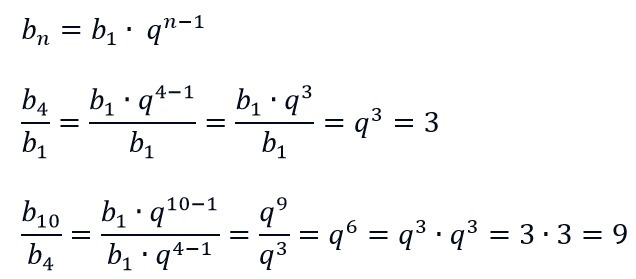 Четвертый член геометрической прогрессии в 3 раза больше её первого члена. Во сколько раз десятый член этой прогрессии больше её четвёртого?