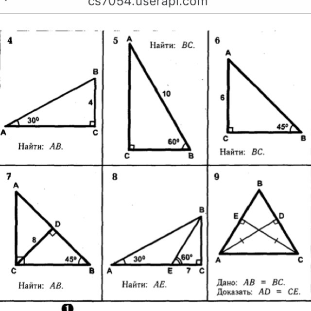 КАТЕТ, ЛЕЖАЩИЙ ПРОТИВ УГЛА В 30° В ДВА РАЗА КОРОЧЕ ГИПОТЕНУЗЫ!!