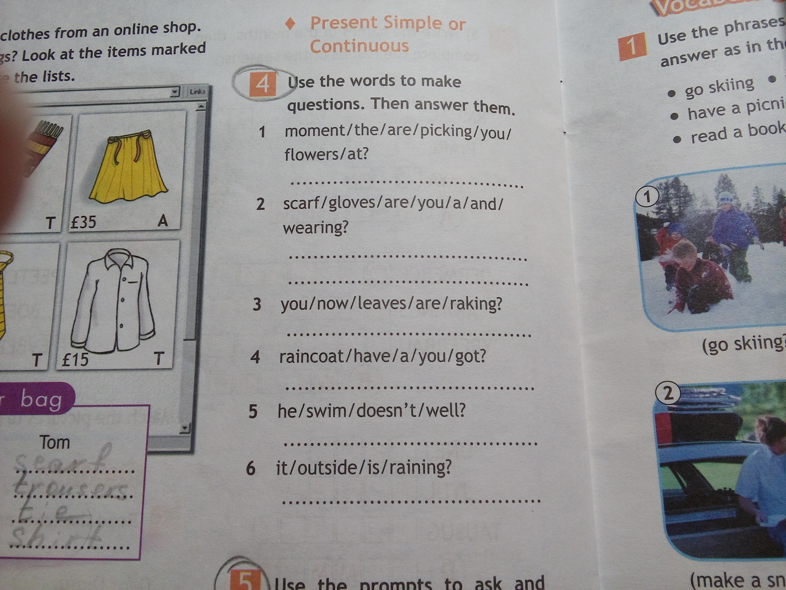2 Are you wearing a scarf and gloves? No, I am not.I am not wearing a scarf and gloves.