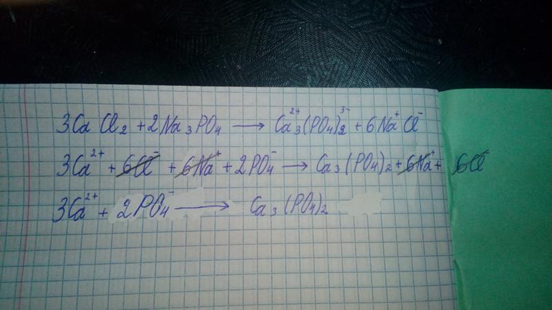 3Ca(+2) + 6Cl(-0) + 6Na(+) + 2PO4(-3) -> Ca3(PO4)2 + 6Na(+) + 6Cl(-)