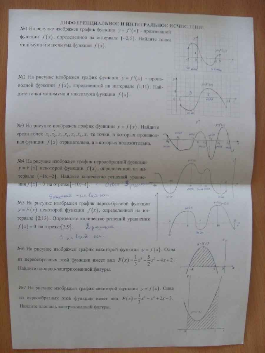 5. f(x) - это производная от F(x). Решение уравнения f(x)=0 - это точки экстремумов. Нужно просто посчитать все "вершины" и "низины". На отрезке [3; 9] два решения - одна "вершина" и одна "низина".