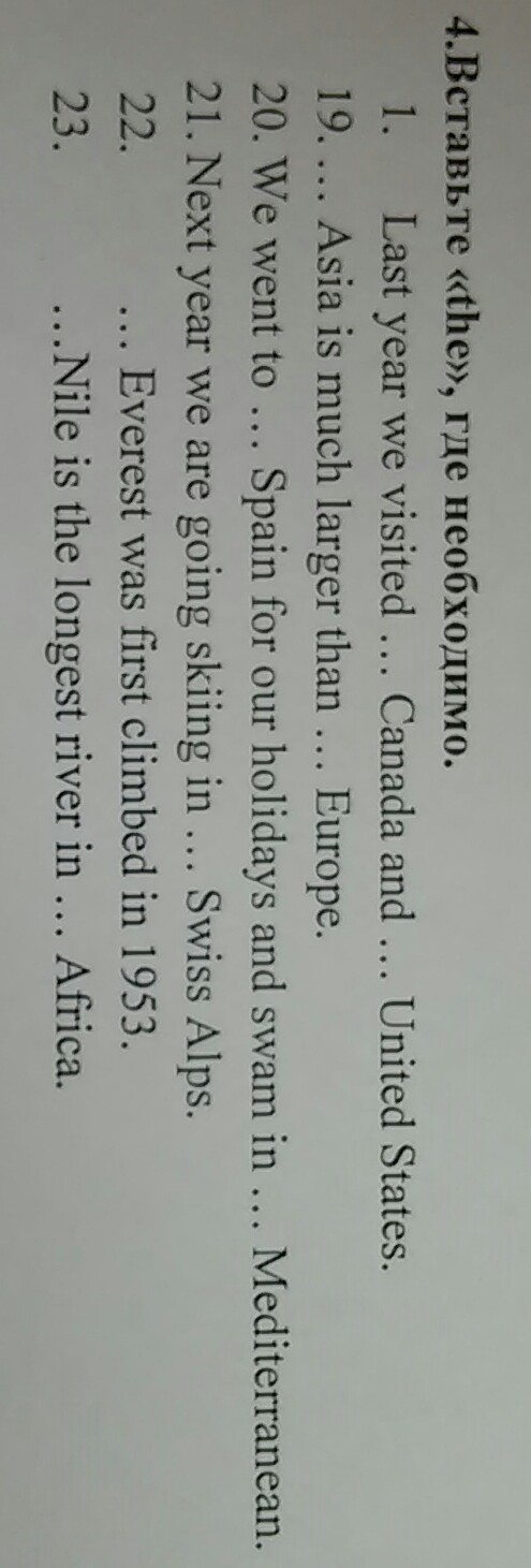 22 --- Everest без артикля 23 the Nile ... --- Africa