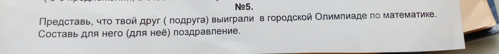 Дорогой( ая) (имя) я поздравляю от всей души тебя. Ты вновь выйграл(ала) олимпиаду по математике. Ты самый (самая) умный (умная) ученик (ученица) в классе да и вообще во всей школе