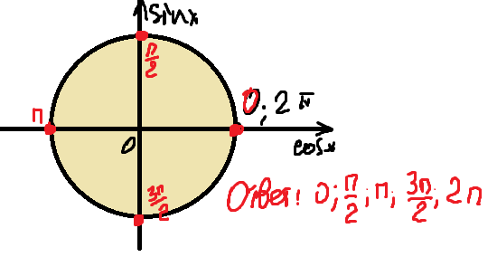 sinxcosx=0 sinx=0 x=пk 0;pi; 2pi