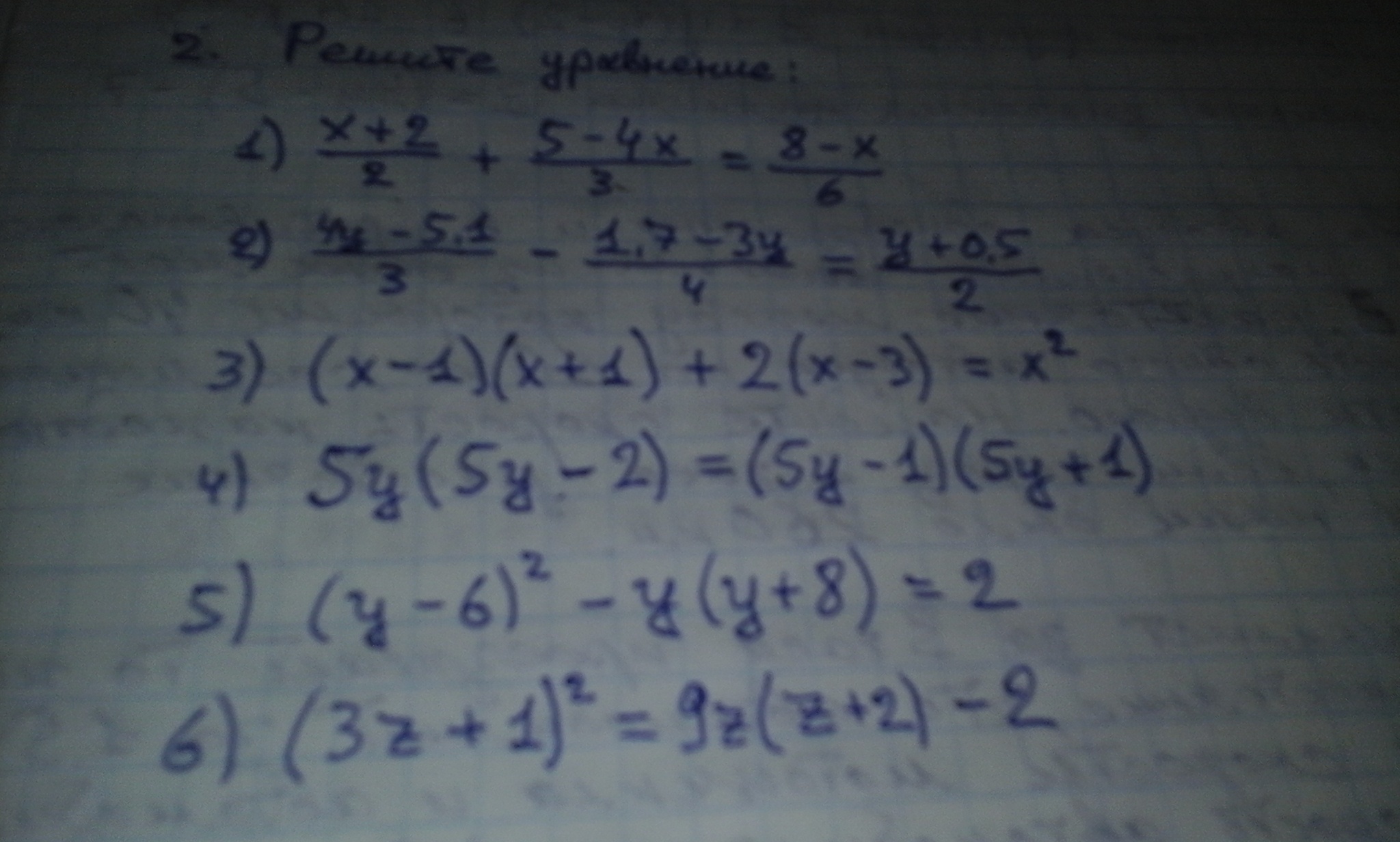 5) (y-6)^2-y(y+8)=2