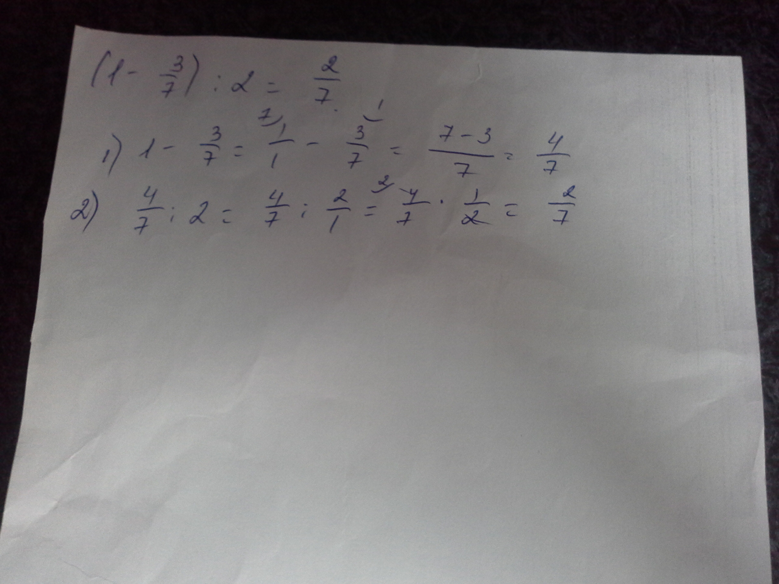 (1-3/7):2=(7/7-3/7):2=4/7:2=4/7*1/2=2/7