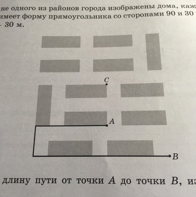 На плане одного из районов города изображены дома , каждый из которых имеет форму прямоугольника со сторонами 90 и 30 м. Ширина улиц - 30 м