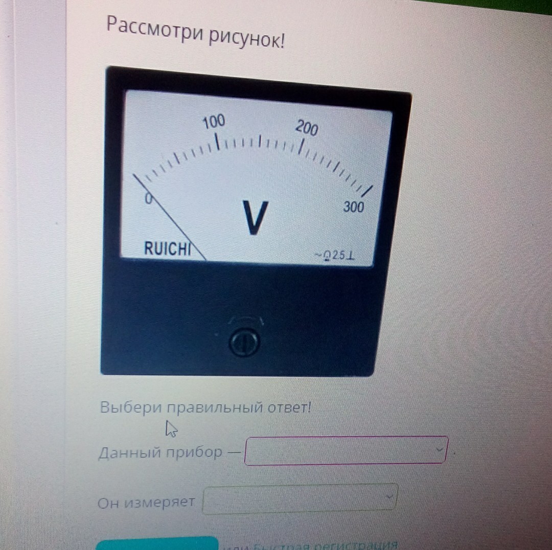 Он измеряет - напряжение (еще можно добавить ЭДС, но это вряд ли будет в выпадающем меню для ответов)