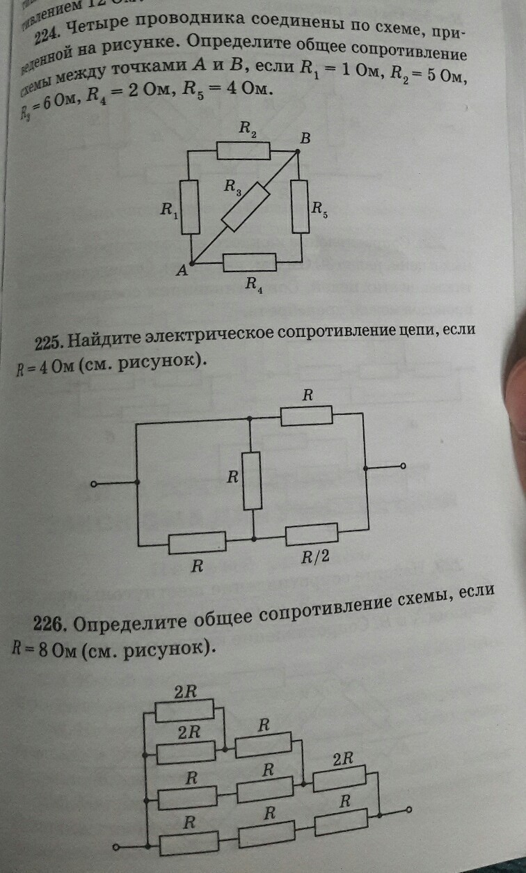 Общее сопротивление: 1/R = 1/(R₁+R₂) + 1/R₃ + 1/(R₄+R₅) =