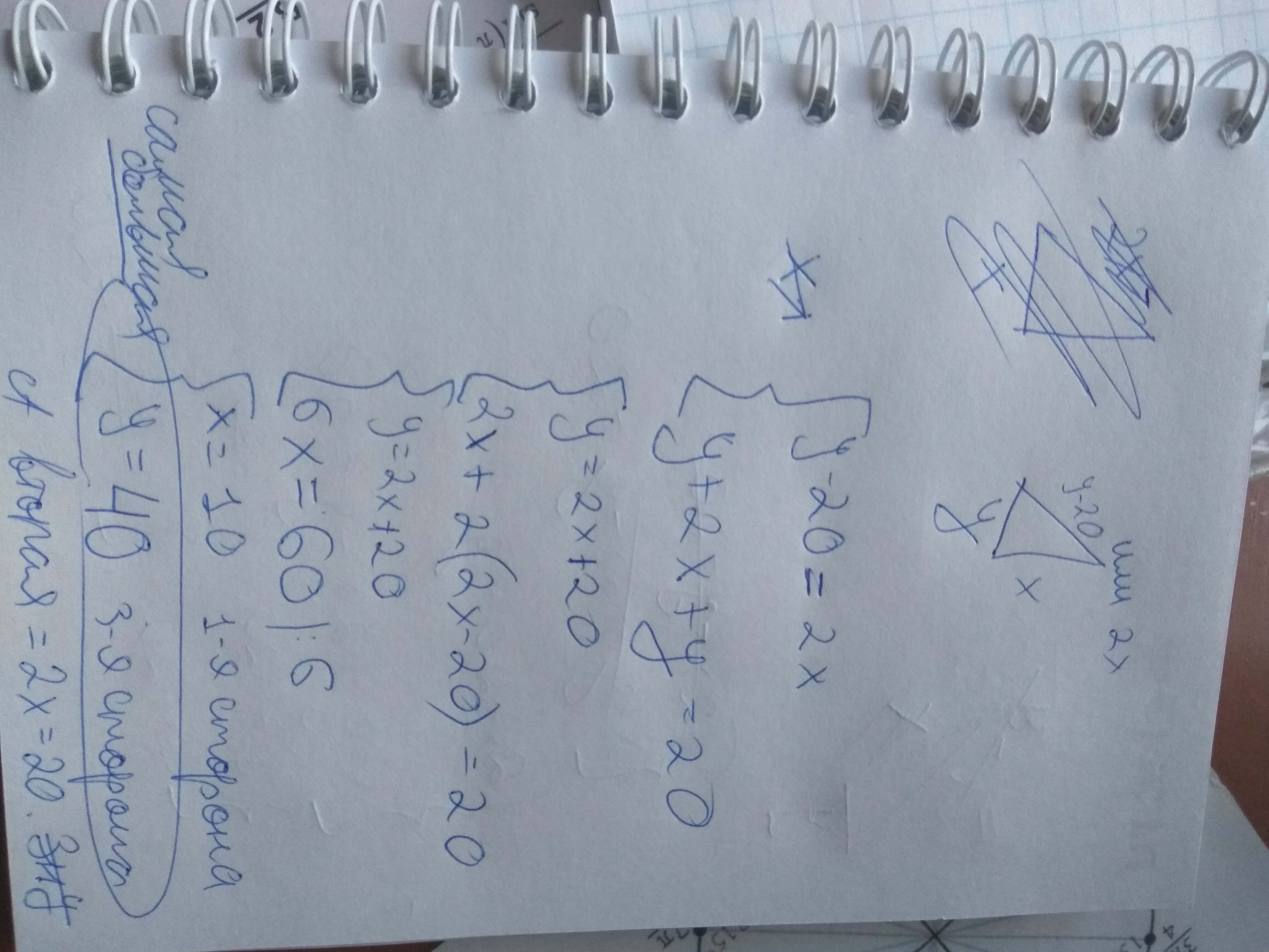 математика 5 класс Вторая сторона треугольника в 2 раза больше первой и на 20 см меньше третьей стороны . Найдите наибольшую сторону этого треугольника , если его приметр равен 150см