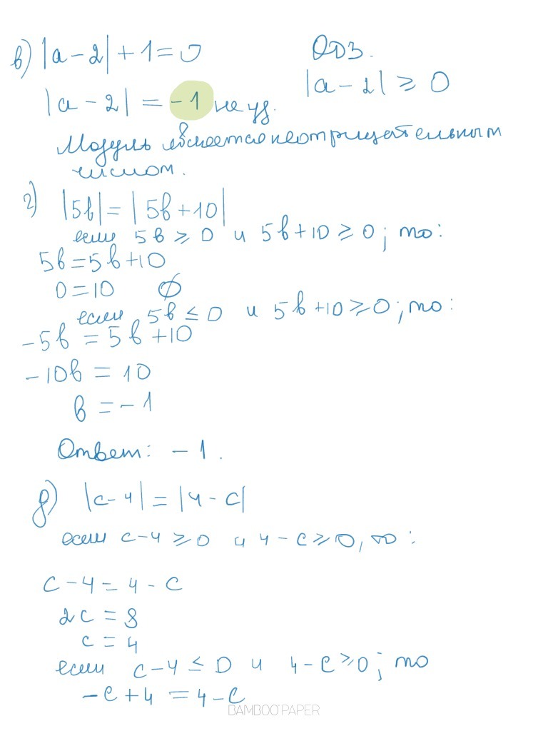 в) уравнение | a - 2 | + 1 = 0 не имеет корней.