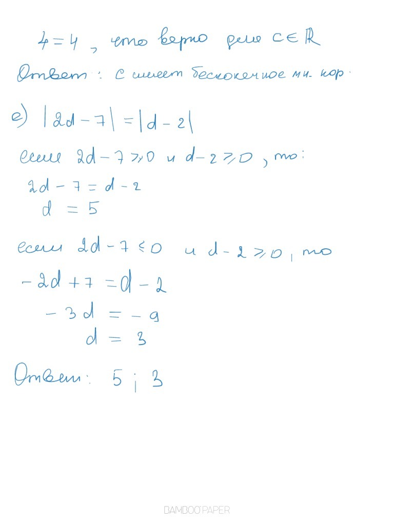 е) уравнение | 2d - 7 | = | d - 2 | имеет ровно два корня.