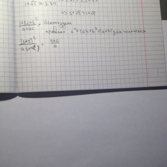 (1+2c+c^2)/(a+ac)=(1+c)^2/a(1+c)=(1+c)/a.