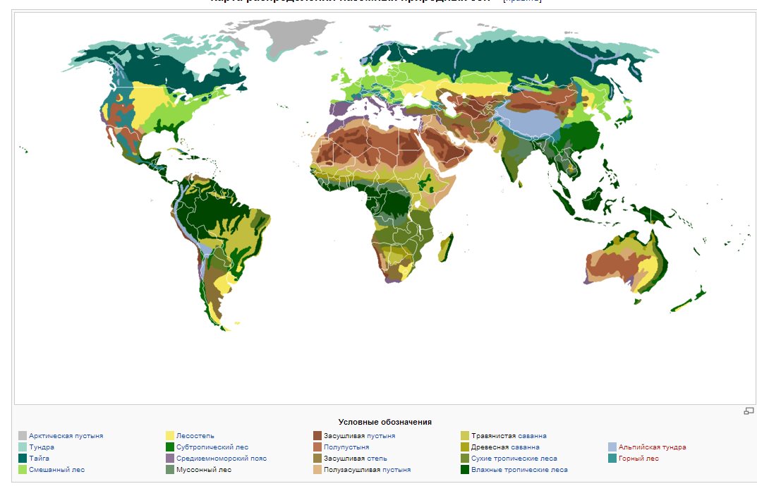 Чтобы вам было проще и понятнее, посмотрите на картинку. Там показано распределение Природных зон по поверхности Земли.