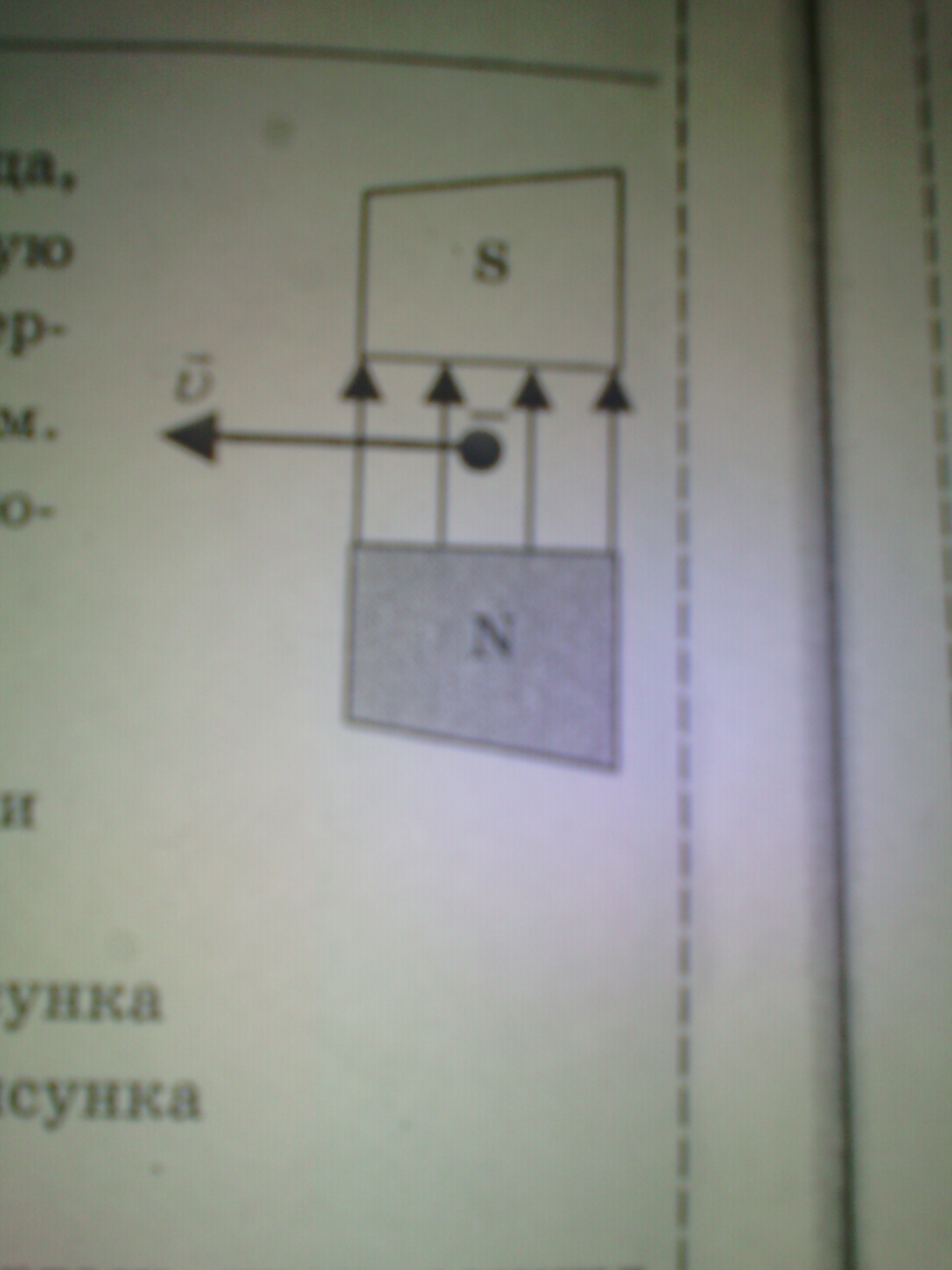 Отрицательно заряженная частица, имеющая горизонтально направленную скорость, влетает в область поля перпендикулярно магнитным линиям индукции. Куда направлена действующая на частицу сила? И почему.