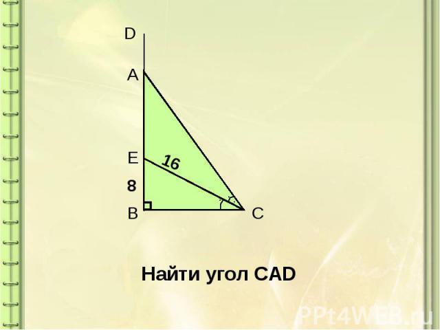Дано: ΔАВС — прямоугольный (∠В=90°), ЕС = 16, ЕВ = 8, ∠ЕСВ = ∠ЕСА.