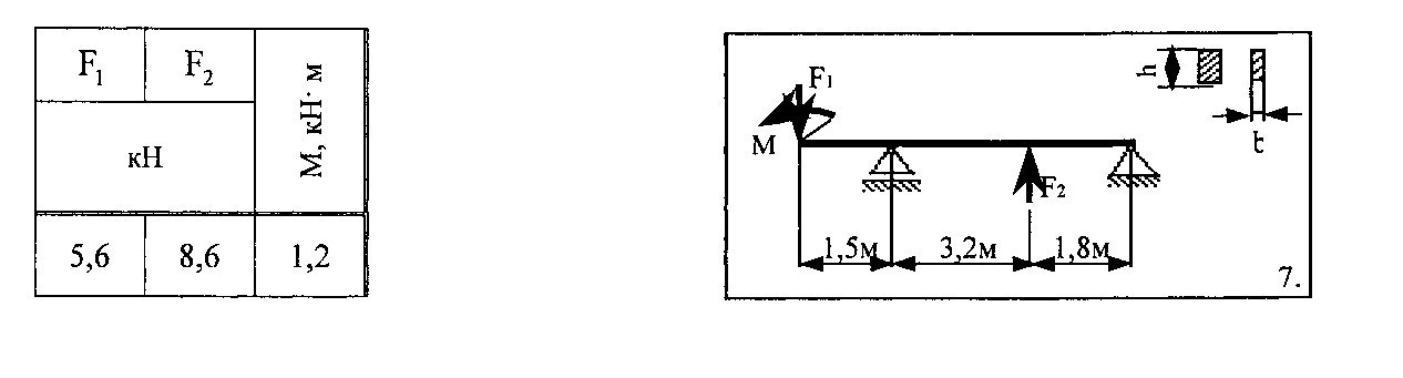 Для двухопорной балки определить реакции опор, построить эпюры поперечных сил, изгибающих моментов и подобрать необходимые размеры h или d сечения деревянной балки, составленной либо из двух прямоугольных, либо из двух круглых брусьев. Для прямоугольного сечения бруса принять h=2b. Для дерева [ <т]=10 МПа.