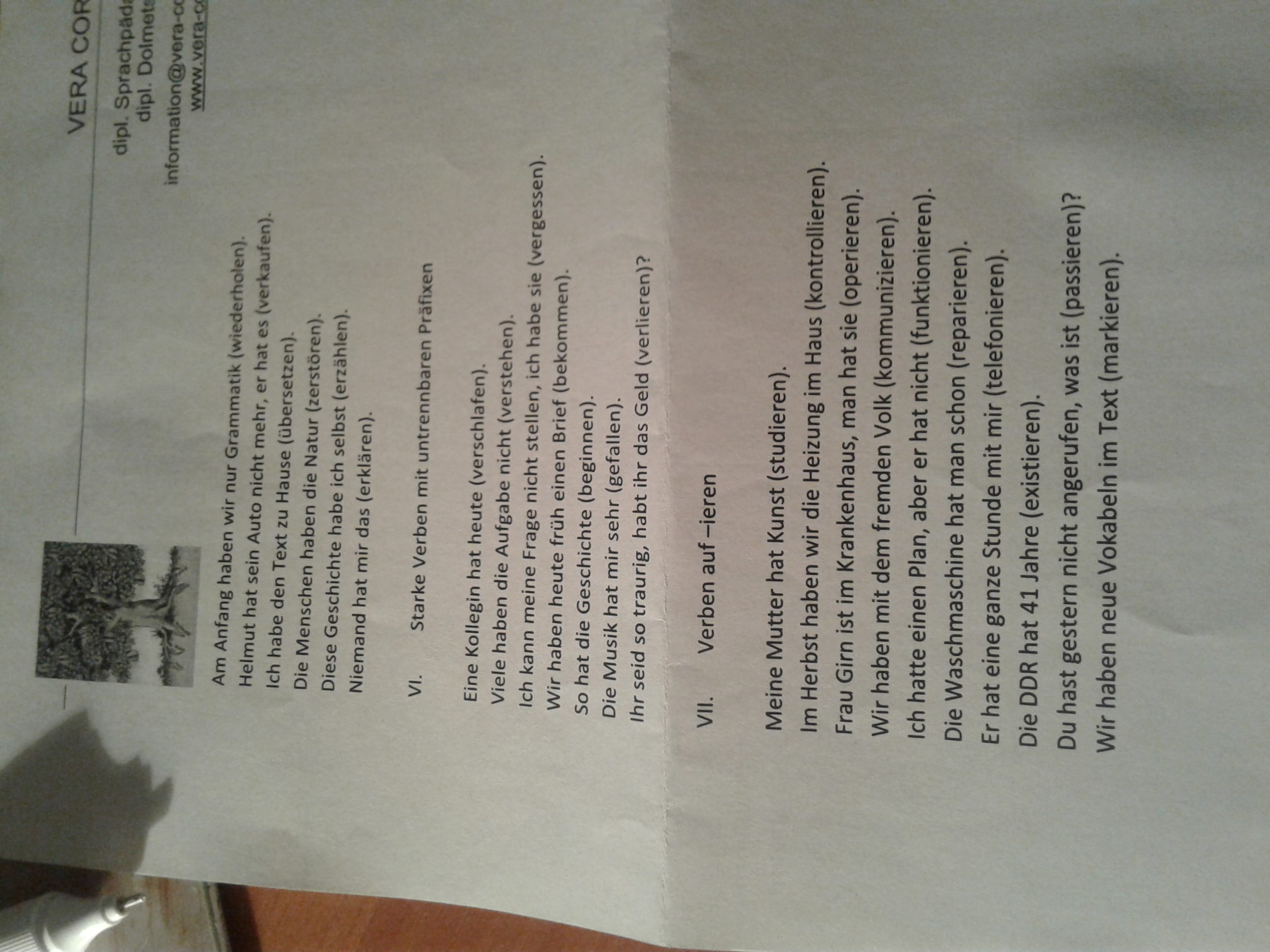 3.Ich kann meine Frage nicht stellen, ich habe sie vergessen.