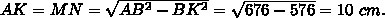 Из прям. тр-ка АВК по теор. Пифагора находим АК, которая и равна искомой MN.