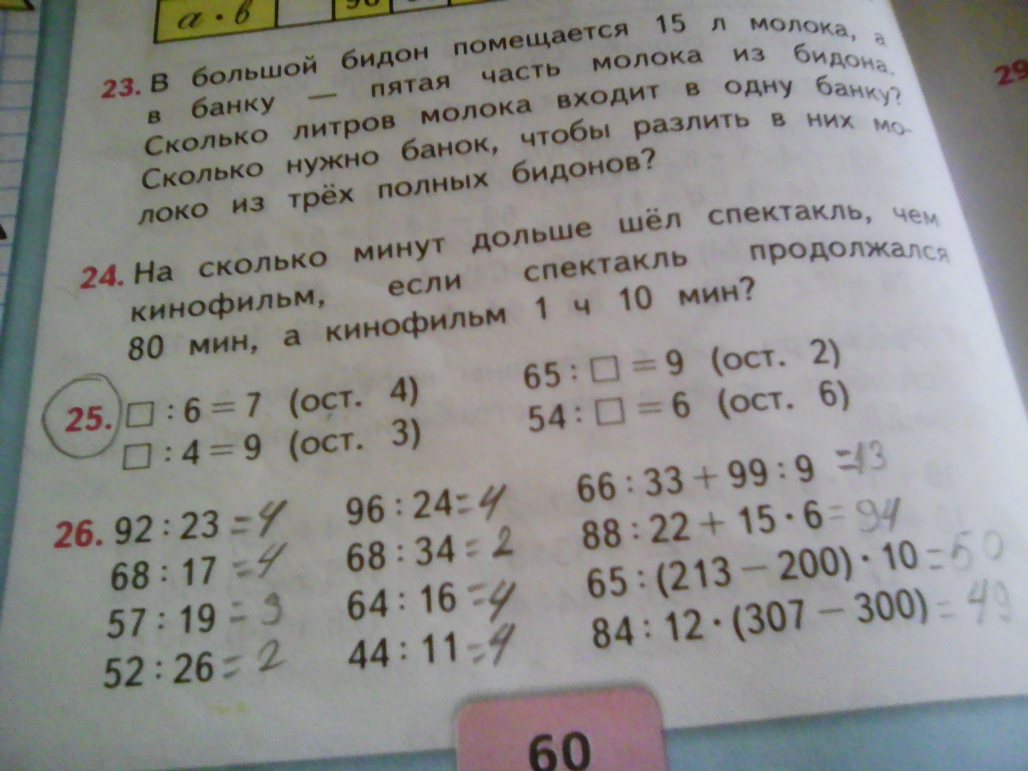 1). 7*6+4=46; 2). 9*4+3=39; 3).65:7=9(ост 2); 4).54:8=6(ост.6).