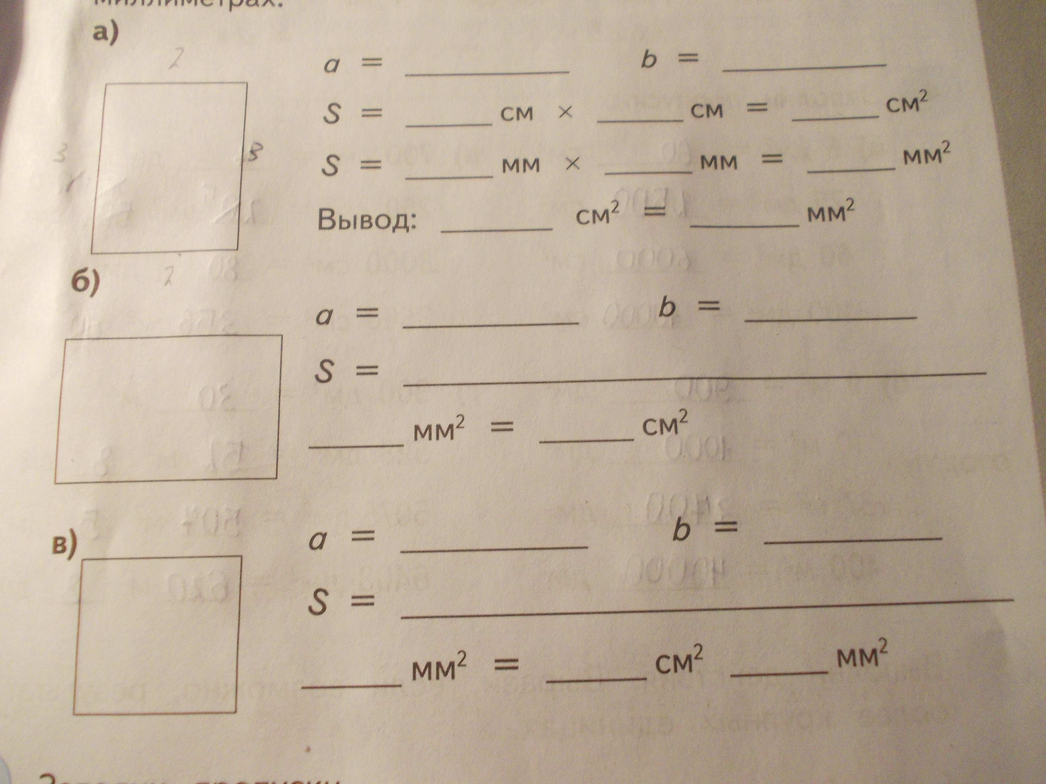 измерь стороны прямоугольника вычисли площадь прямоугольников в квадратных сантиметрах и в квадратных миллиметрах.