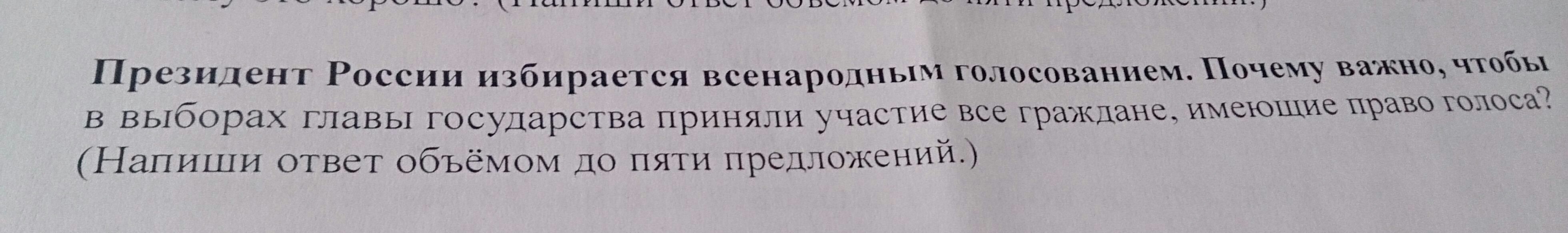 Благодоря всеобщему голосованию можно более точно вычислить пожелание всех граждан страны. Если бы граждане не ходили на голосование, то партии могли учитывать голоса тех , кто уже давно не ходил на выборы(например бабушкк >70). Также это проявление своей гражданской позиции, которую нельзя умалчивать. Именно ваш голос может стать решающим. За каждый ваш голос партия или кандидат получает 110 руб в год