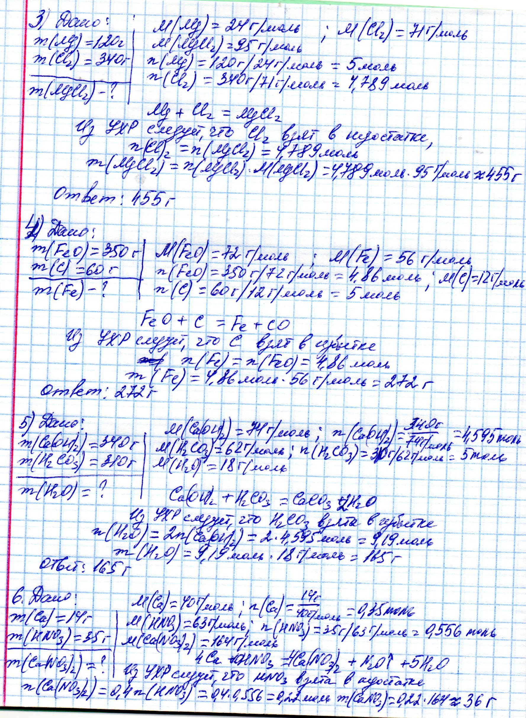 3.Для реакции взяли 120 граммов магния и 340 граммов хлора. Определите массу получившегося хлорида магния в граммах. Все атомные массы и получающиеся результаты округляйте до целых.
