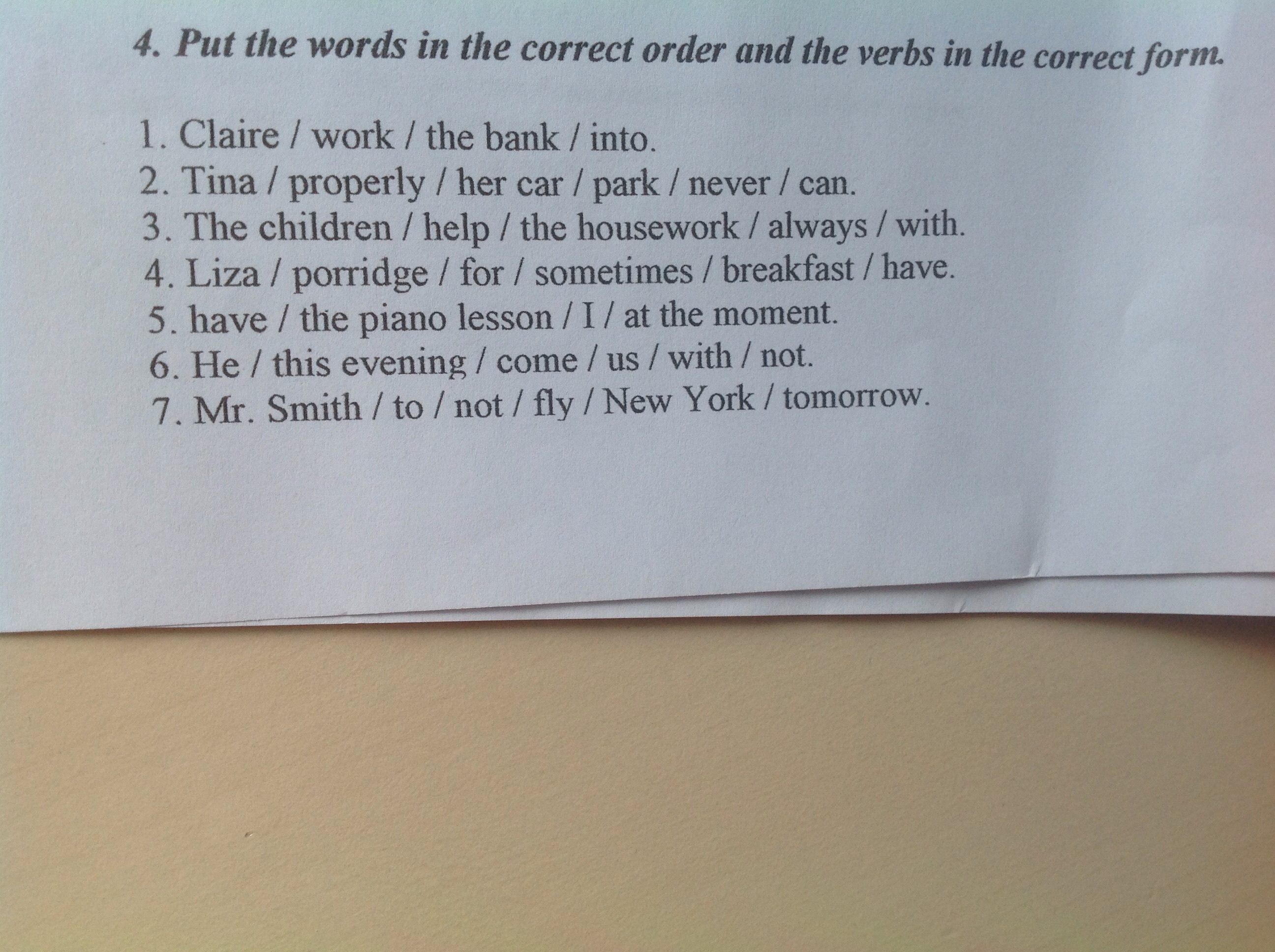 2 Tina can never park her car properly. 3 The children always help with the housework.