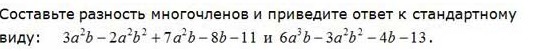 Составьте разность многочленов и приведите ответ к стандартному виду