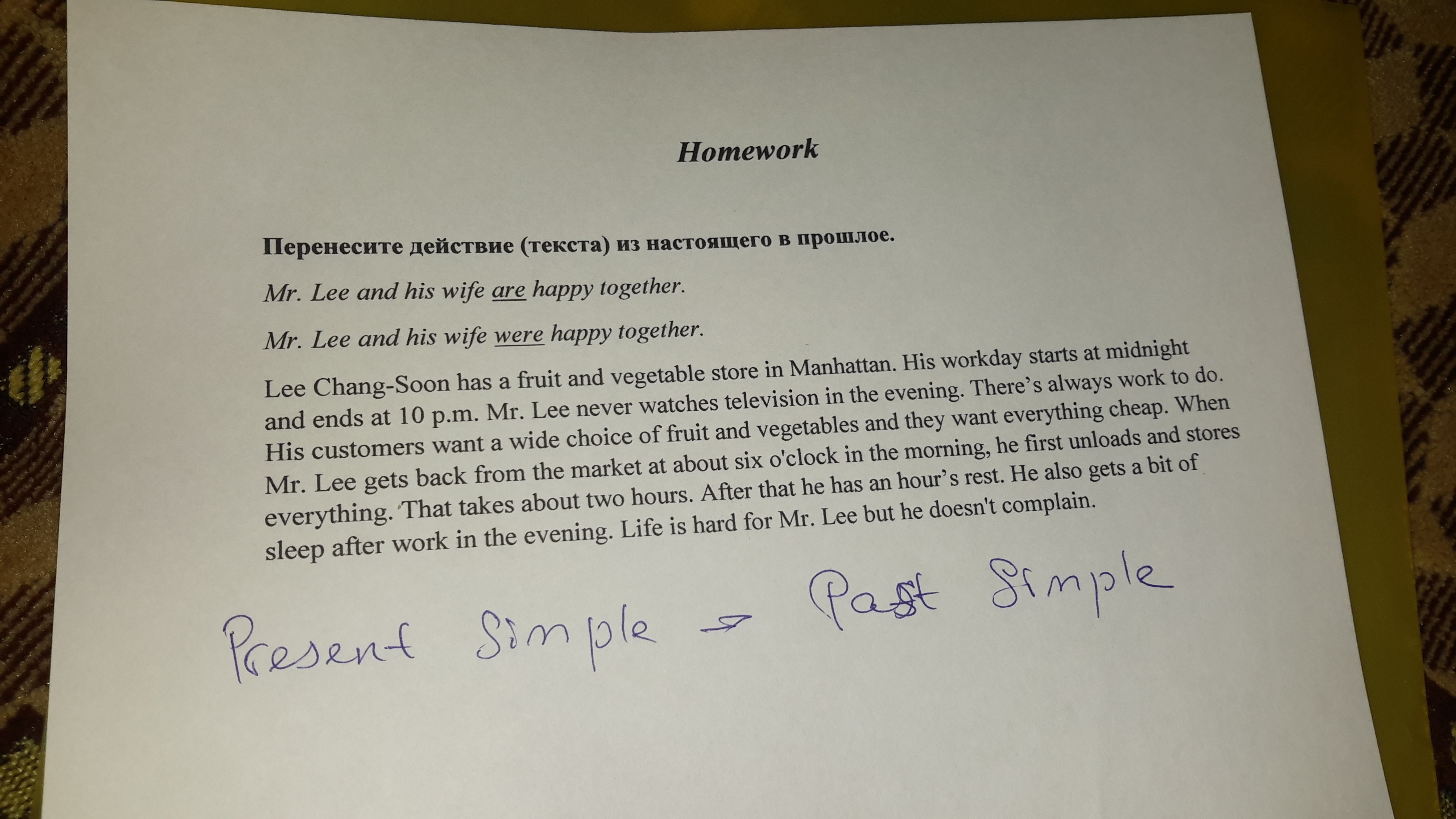 Lee Chang-Soon had a fruit and vegetable store in Manhattan. His workday started at midnight and ended at 10 pm. Mr. Lee never watched television in the evening, There was always work to do. His customers wanted a wide choice of fruit and vegetables and they wanted everything cheap. When Mr. Lee got back from the marker at about six o'clock in the morning, he first unloaded and stored everything. That took about two hours, After that he had an hour's rest. He also got a bit of sleep after work in the evening. Life was hard for Mr. Lee but he didn't complain.
