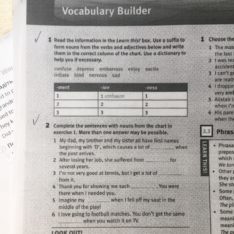 пардон, с первой частью вышла проблема, еще раз: confusion, depression, embarrassment, enjoyment, excitement, irritation, kindness, nervousness, sadness.
