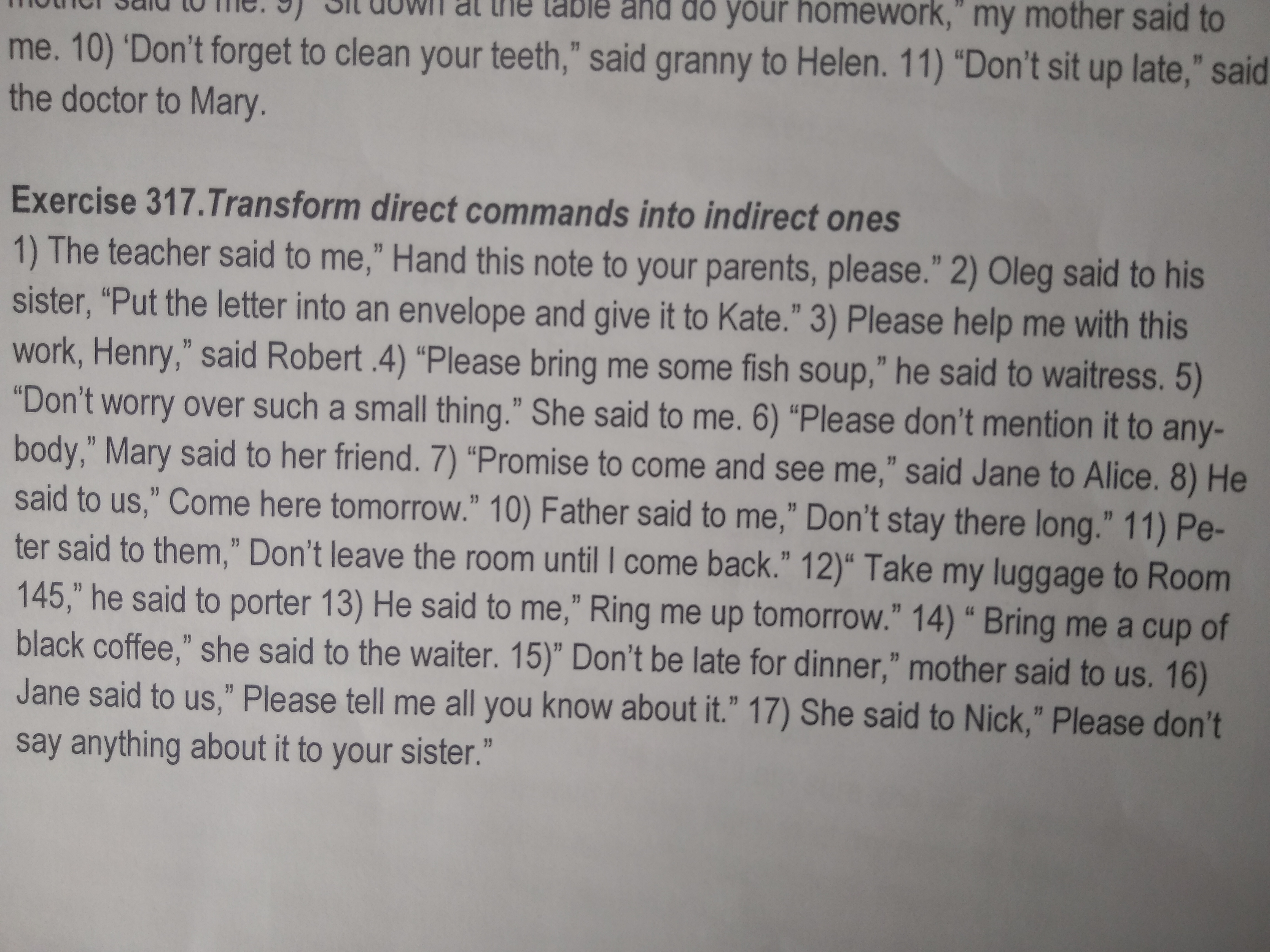 НЕ БУДЬТЕ РАВНОДУШНЫ К ЭТОЙ!!!! НУЖНО ПЕРЕВЕСТИ ПРЕДЛОЖЕНИЯ ИЗ ПРЯМОЙ РЕЧИ В КОСВЕННУЮ!!! ВСЯ НАДЕЖДА НА ВАС