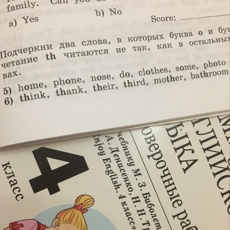 Подчеркни два слова , в которых буква o и буквосочетание th читаются не так,как в остальных словах