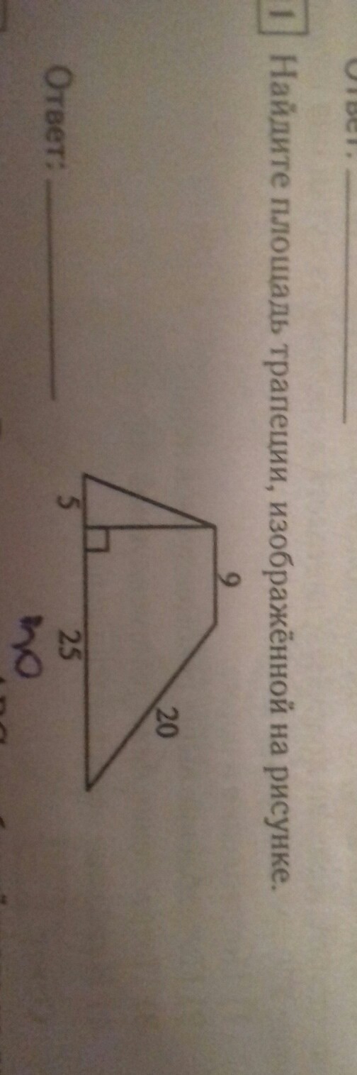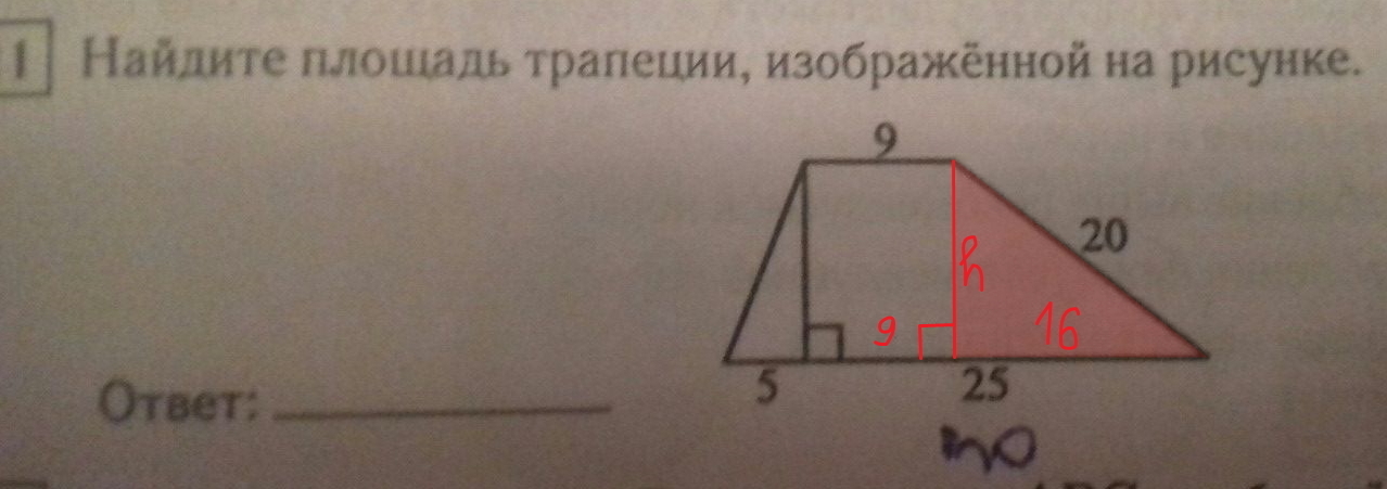 в данном случае получится прямоугольный треугольник с гипотенузой-второй боковой стороной трапеции и вторым катетом, длина которого легко вычисляется: 25-9 = 16