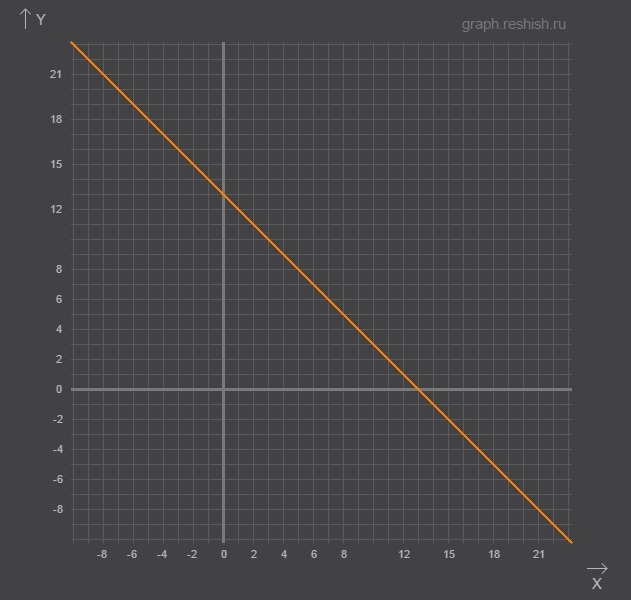 строишь систему координат. находишь на оси ОУ число 13. ставишь карандаш в эту точку. проводиь диагональ (под углом 45 относительно оси ОХ так, чтобы справа было ниже чем слева)