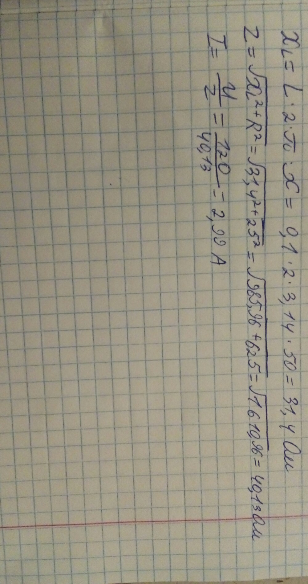 индуктивность катушки равна 0 1 гн и активным сопротивлением 25 ом включена в цепь технического приминения тока определите силу тока в катушке если напряжение на ее вводах 120в СРОЧНО ПОЖАЛУЙСТА