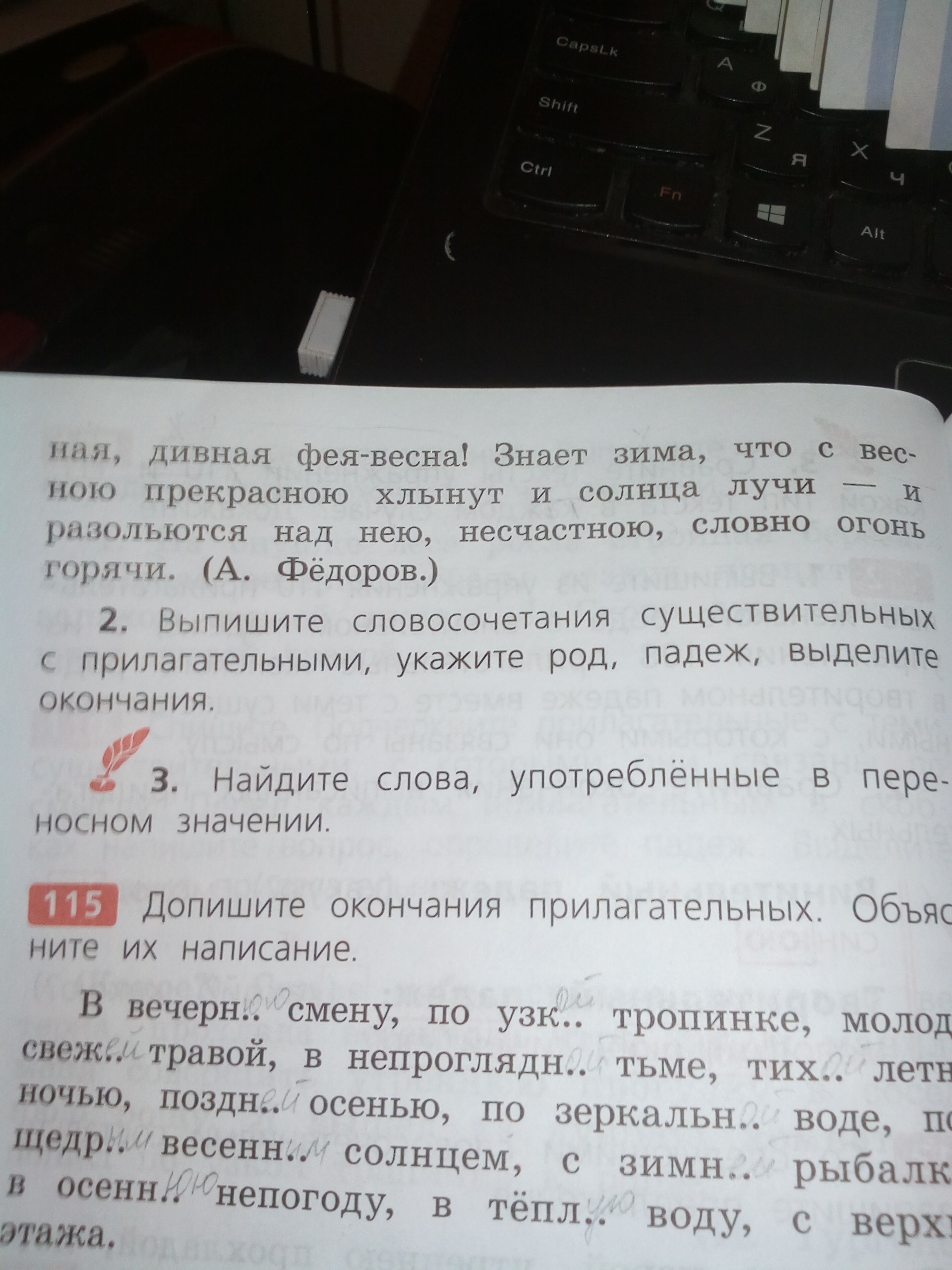 Ребята пожалуйста помогите Выпишите словосочетания существительных с прилагательными, Укажите род, падеж, Выделите окончания. Дом 20 баллов Заранее спасибо
