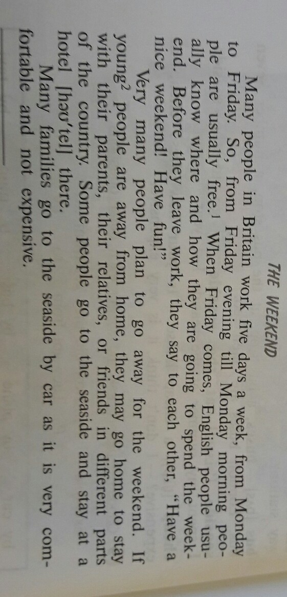Так, с вечера Пятницы до Утра Понедельника люди обычно свободны. Когда наступает Пятница англичане обычно знаю где и как они проведут выходные. До этого они работают, они говорят друг другу,"Хорошо проведите выходные!" " Веселитесь!"