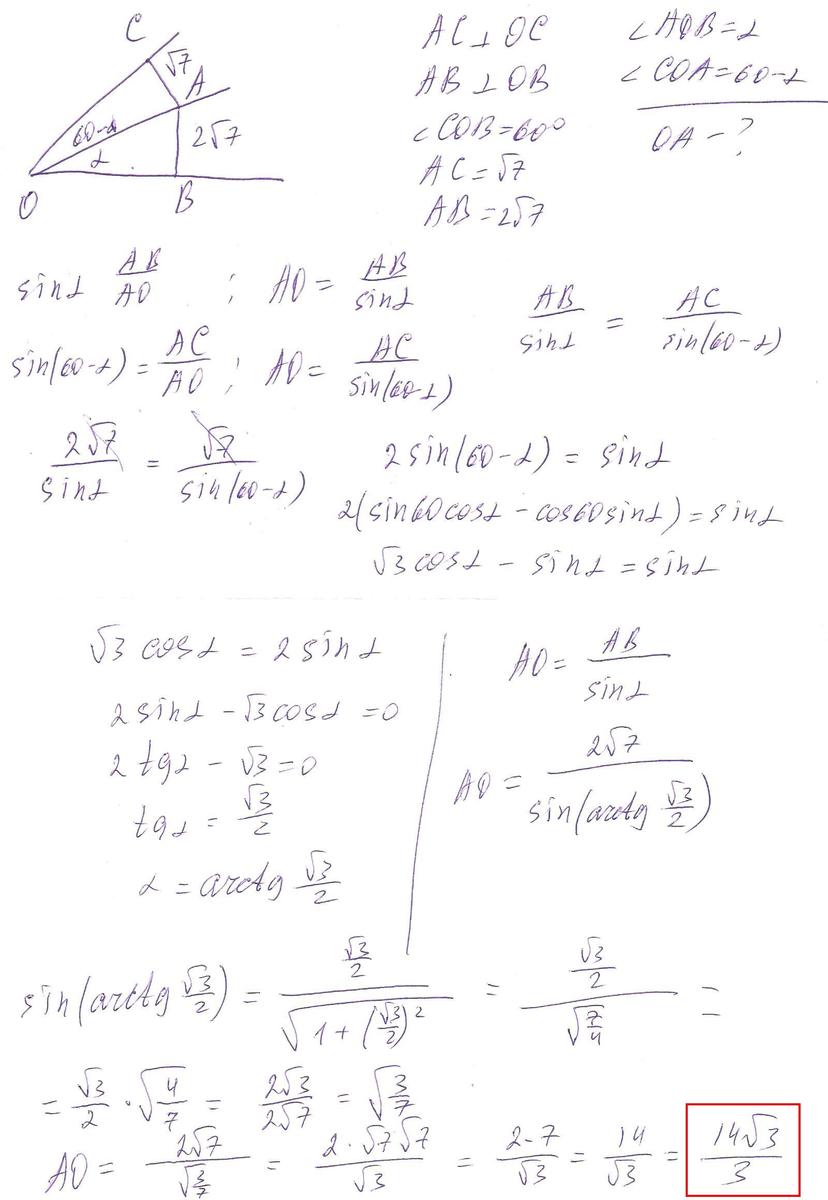 Внутри угла величиной 60(градусов) расположена точка, отстоящая на расстоянии и