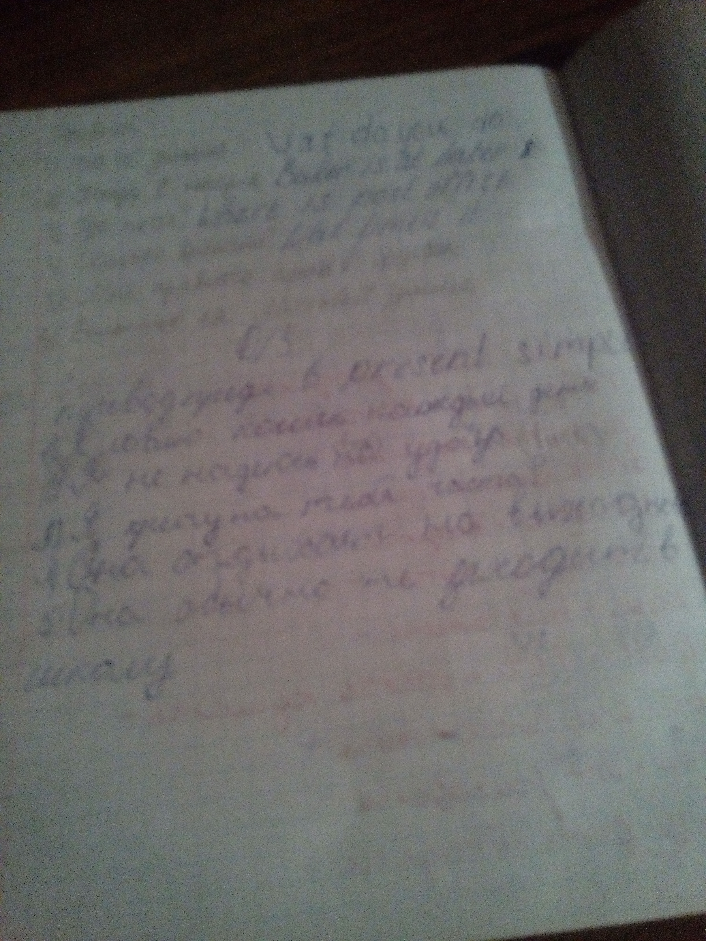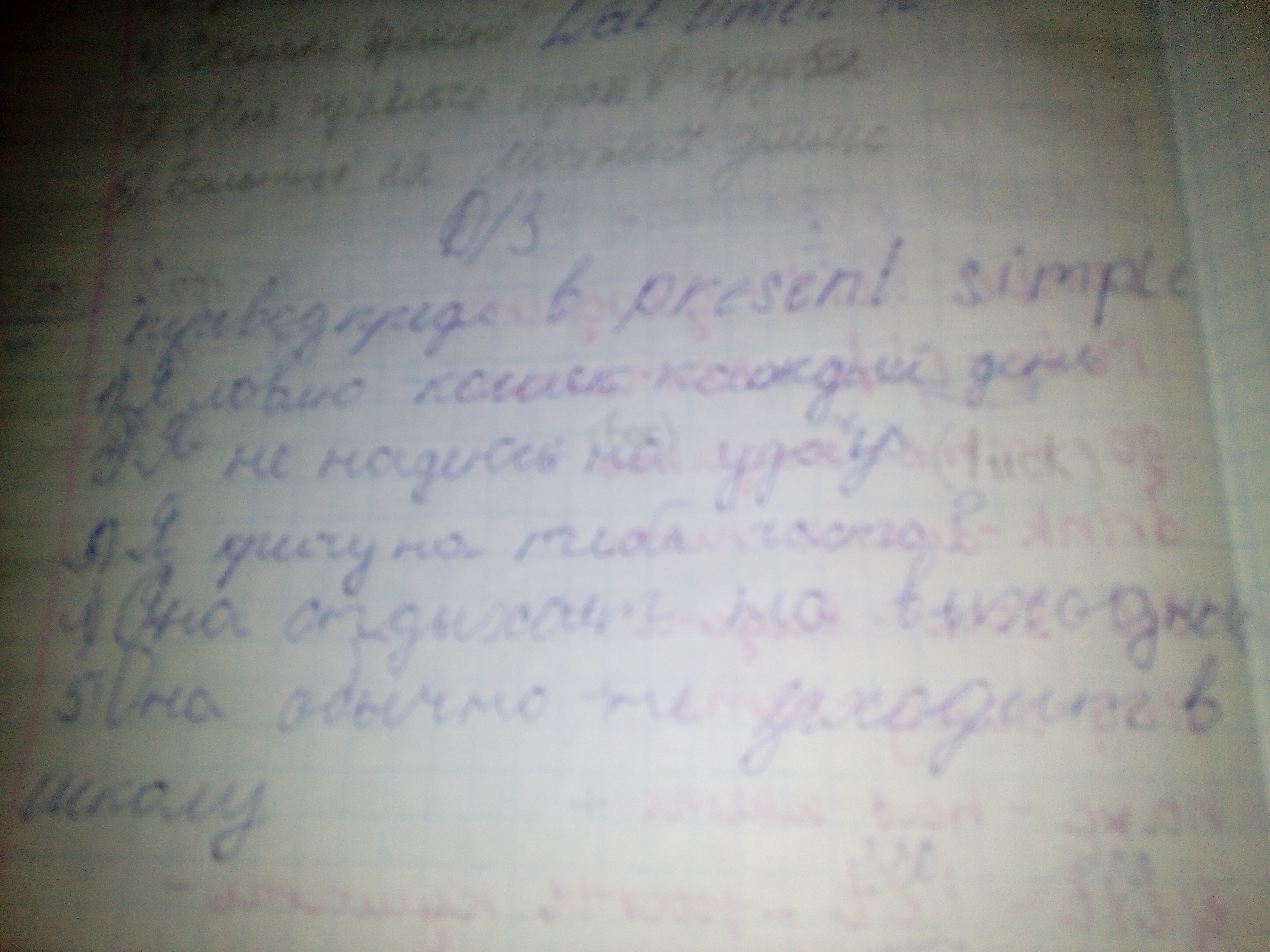 1 I catch cats every day 2 I don’t count on luck 3 Do I often shout at you? 4 She usually takes a rest at weekends 5 я не понял этого предложения, она вообще в школу не ходит? Или не заходит в здание школы?