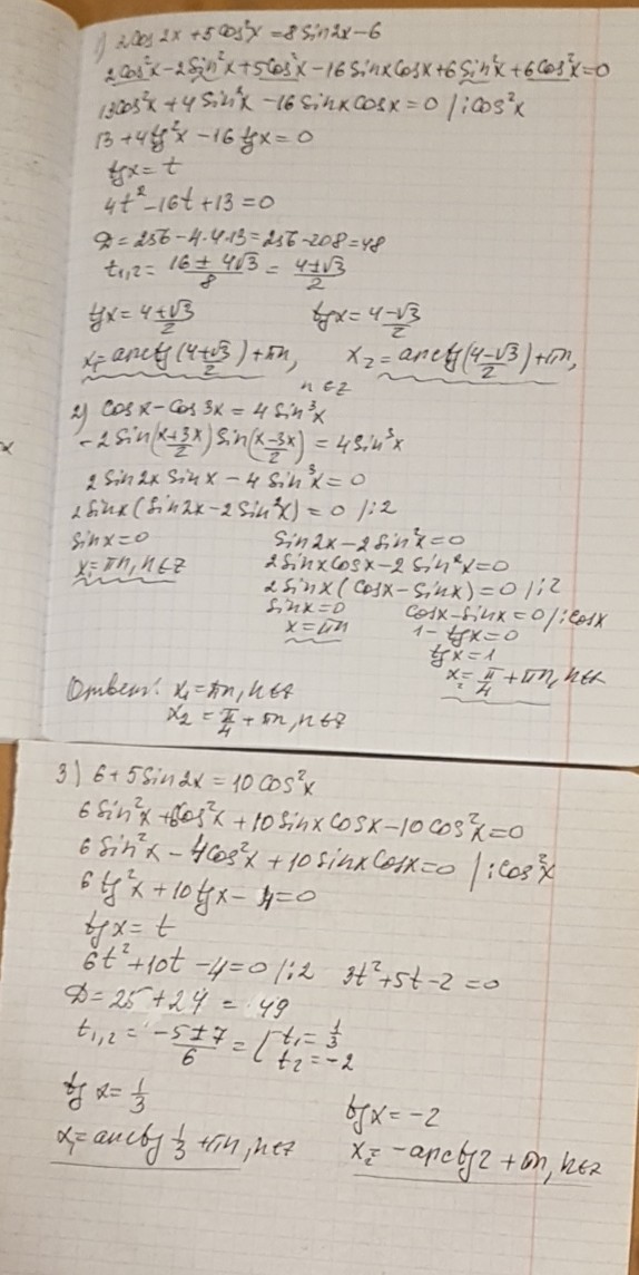 1: 2cos(2x) + 5cos^2(x)=8sin(2x)-6