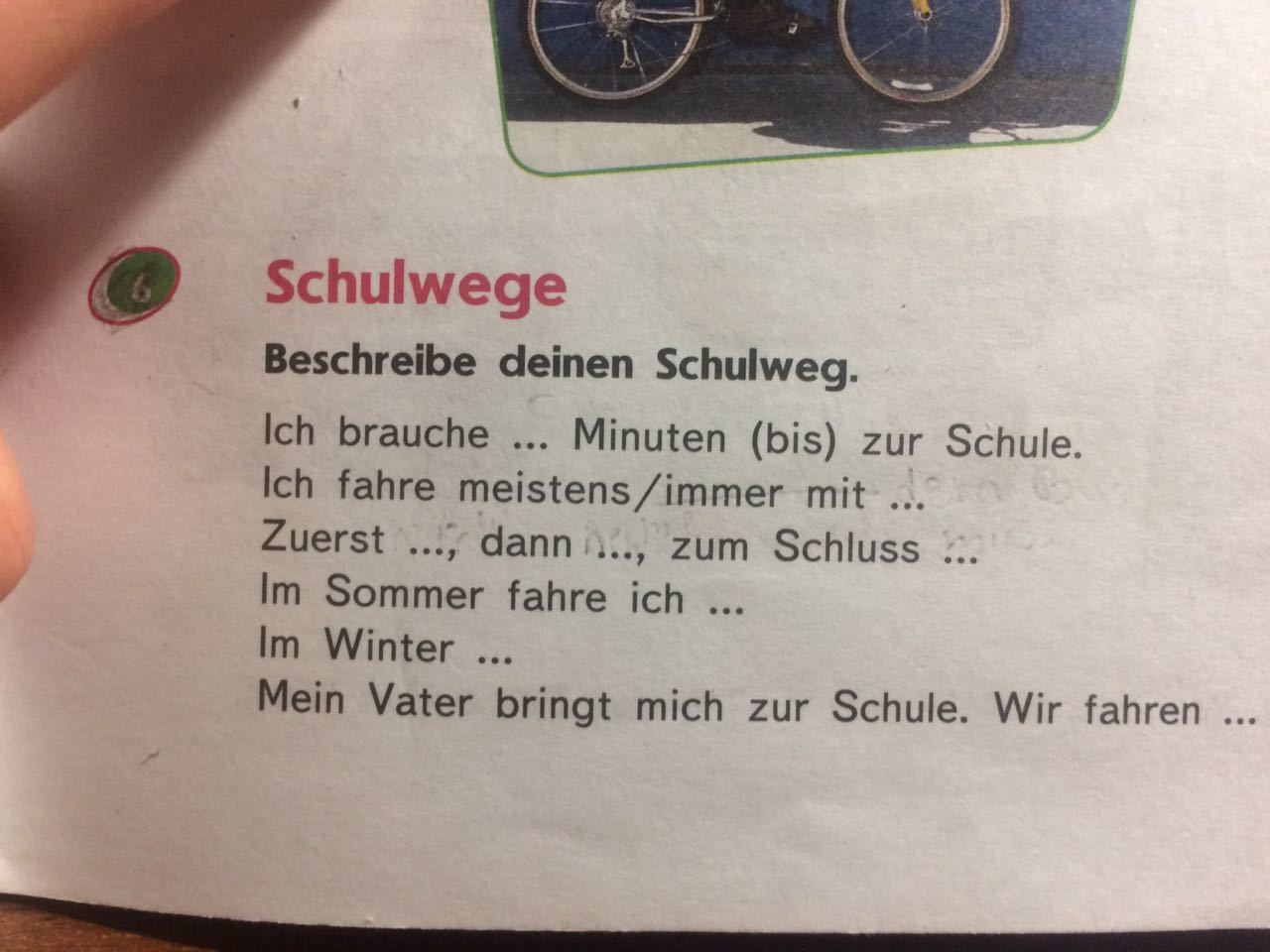 Mein Vater bringt mich zur Schule. Wir fahren mit dem Auto.
