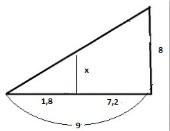 х/1,8=8/(1,8+7,2) ⇒х=1,8*8/9=8/5=1,6 м.