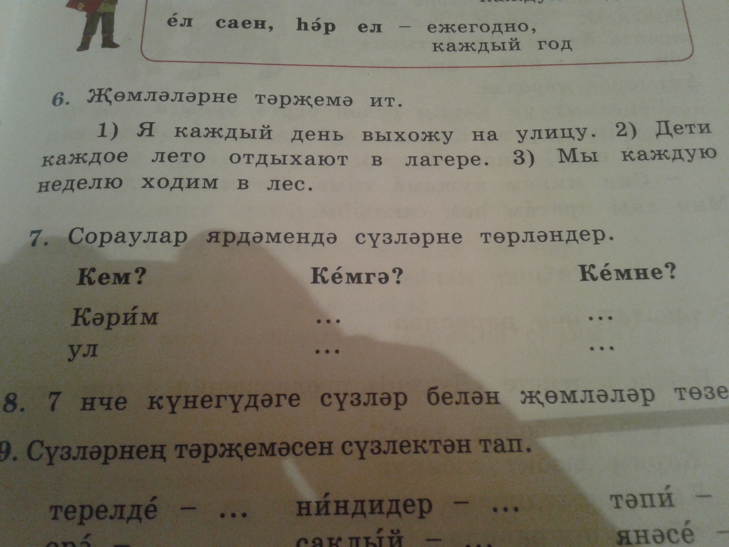 Мин консаен урамга чыгам. Балалар ел саен жэй коне лагерда ял итэлэр. Без атна саен урманга йорибез.