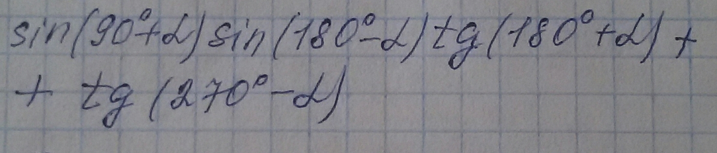 displaystyle sin(90+ alpha)cdot sin(180- alpha) cdot tg(180+ alpha)+tg(270- alpha)=cos alpha sin  alpha cdot