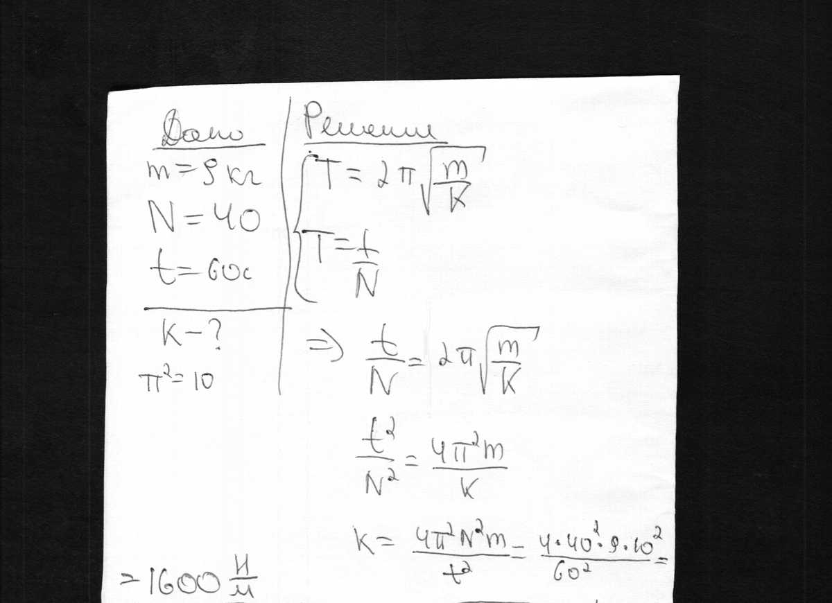 пружина с грузом массой 9 кг совершает 40 колебаний в минуту.найти коэффициент жесткости пружины